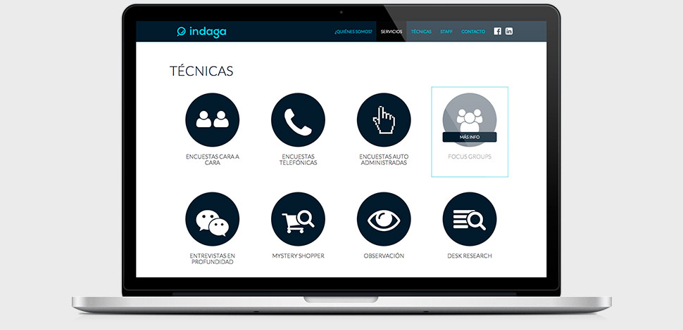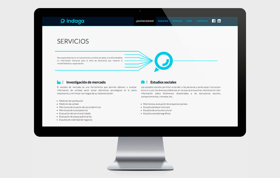 Indaga es una empresa en desarrollo que se dedica a estudiar datos del mercado, situaciones sociales e institucionales entre otras.
